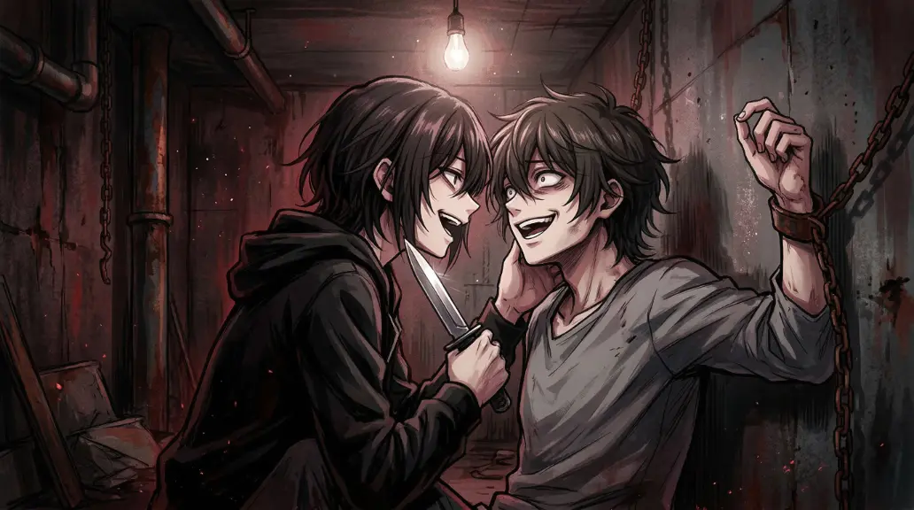 「無駄だよ。ここは誰も来ない。泣き叫んでも、誰も助けに来てなんてくれない。ふふっ……可愛いな、恐怖に歪んだ顔も。さあ、これからは永遠に一緒だね」
